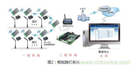那么路燈是如何控制亮度協調工作的呢?下圖則是路燈控制系統的整體系統示意圖,在每個路燈節點上由一級終端設備將路況和環境信息通過ZigBee無線傳送給二級終端ZigBee集中器,通過它將信號轉為公網用的GPRS信號,最終傳遞給我們的管理中心,管理中心人員根據傳回來的信號,做出相應的控制,調節每個節點的亮滅及亮度。