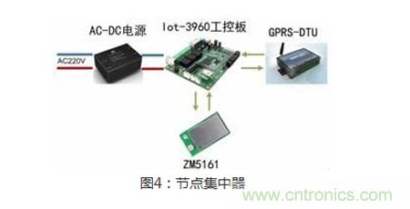 這就是二級終端ZigBee集中器,它由ZM5161模塊,Iot-3960工控板和GPRS-DTU組成,主要用來實現ZigBee信號與GPRS信號的轉換,通過公網傳輸給控制中心。
