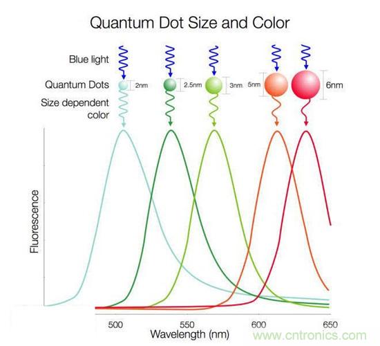 而傳說中的量子點顯示技術就是對背光方案做出變革:所謂的量子點,可以簡單認為是長寬高都在100nm以下的材料(幾個原子的大?。?,這種極小的半導體晶體在激發后可以發光,至于究竟是怎么發光的,那是科學研究范疇,這里不做討論。比較靠譜的一個結論是,量子點的大小,與其所發出光的能量強度(波長)成正比。也就是說,量子點的直徑越小,激發后的光波長越短,也就是顏色偏藍,直徑越大則激發后的光波長越長,也就是顏色偏紅。