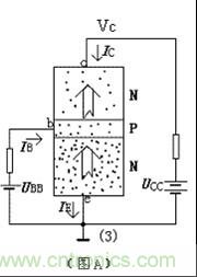 看圖D,接著上面的討論,集電極電流Ic與集電極電位Vc的大小無關(guān),主要取決于發(fā)射區(qū)載流子對基區(qū)的發(fā)射注入程度。