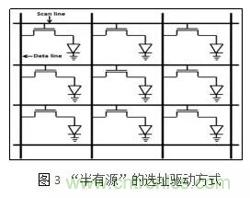 而第三種“半有源”驅(qū)動雖然可以較好地避免像素之間的串?dāng)_現(xiàn)象,但是由于其像素電路中沒有存儲電容,并且每一列的驅(qū)動電流信號需要單獨(dú)調(diào)制,并不能完全達(dá)到上面列出的有源選址驅(qū)動方式的全部優(yōu)勢。
