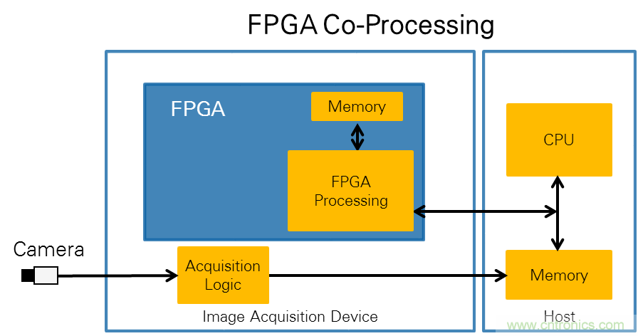 圖1.在FPGA協處理中,圖像使用CPU進行采集后,通過DMA發送到FPGA,然后由FPGA對圖像進行處理。