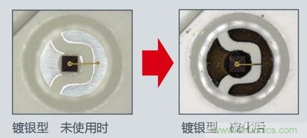 【導(dǎo)讀】“才幾個月的新車,本來高位剎車燈在剎車時燈光高亮,可現(xiàn)在剎車時燈光變暗紅了不知道怎么辦。”相信不少人有這樣的困擾,這是因為LED內(nèi)部使用的銀受環(huán)境氣體影響被硫化了,顏色變黑,從而造成LED光亮度的降低。近年來LED的使用環(huán)境越來越嚴(yán)苛,防止硫化已成為確保可靠性不可或缺的一環(huán)。為應(yīng)對這個挑戰(zhàn),ROHM面向汽車領(lǐng)域開發(fā)出首款完全無銀的高亮度紅色LED“SML-Y18U2T”,非常有助于汽車剎車燈等在嚴(yán)酷環(huán)境下使用的應(yīng)用的可靠性高提升。
