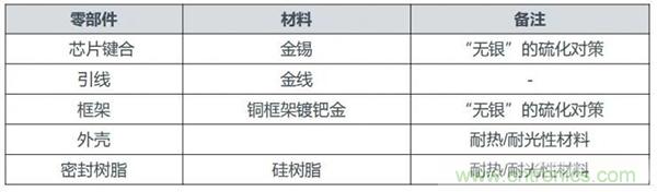 其中硫化氣體由密封樹脂/引線框架界面、引線框架/外殼界面、密封樹脂侵入,可能發(fā)生硫化的位置有4個位置: