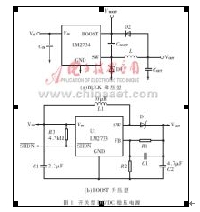 圖1為二款不同功能的開關(guān)型DC/DC轉(zhuǎn)換電路。它們具有轉(zhuǎn)換效率高、重量輕,既可以升壓,又可以降壓,輸出功率大等特點。由于其轉(zhuǎn)換效率高,電路中元器件的發(fā)熱量相對較小。由于電路處于較高頻率的開關(guān)工作狀態(tài),只需采用小容量、小體積的濾波電容即可見效。對輸入源電壓波動的容裕范圍比較寬。