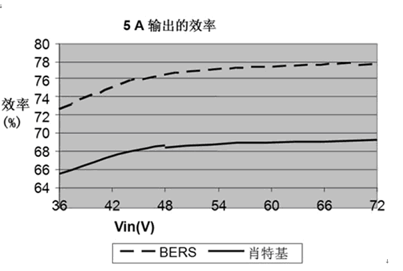 圖2 肖特基與BERS的電源轉換器效率比較