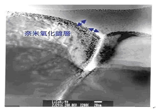 (圖五) 鋰鎳鈷材料之納米氧化物鍍層TEM結(jié)構(gòu)圖