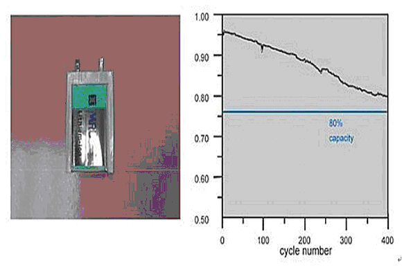 (圖九) 高容量納米鋰電池外觀與與循環(huán)壽命圖