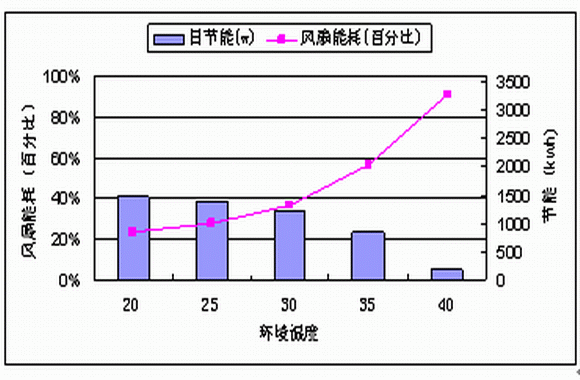 從圖3可看出,隨著環境溫度的降低,換熱單元的耗能隨至減少。當環境溫度為20度時,換熱單元耗能只是滿負荷功耗的25%,日可節約電能約1.5度。