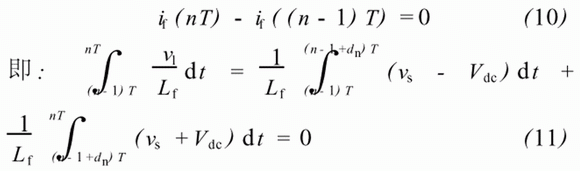 只要采樣和開關(guān)的速度足夠快,在一個(gè)開關(guān)周期內(nèi),我們可以認(rèn)為vs、Vdc恒定,則式(11)可以化解為: