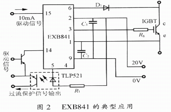 (2)EXB84l外周電路簡單,僅需單電源供電,是最早進入我國市場的ICBT驅(qū)動模塊,技術(shù)成熟,應(yīng)用廣泛;