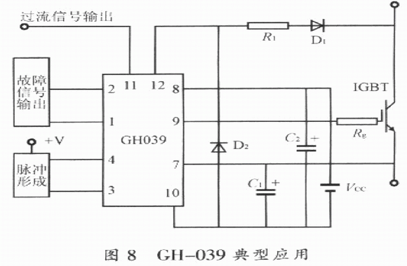 GH-039采用單列直插式12腳封裝,功耗低、工作中發(fā)熱很小,可以高密度使用它采用單電源工作,內(nèi)置高速光耦合器,帶有軟關(guān)斷過流保護電路,過流保護除閉鎖自身輸出外,還給出供用戶使用的同步輸出端。它可以用來直接驅(qū)動300A/600V以下的IGBT模塊。