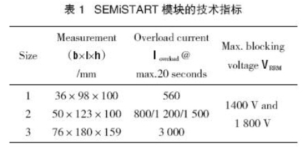 為確保軟起動器既結構緊湊,性價比高又不降低可靠性,軟起動器中所使用的晶閘管必須滿足一些重要的要求,即使軟起動器用在起動電流只幾倍于(3~5倍高)額定電流的系統(tǒng)中。在大規(guī)模系統(tǒng)中,起動電流的峰值常達幾kA,因此,在起動階段,晶閘管必須能夠承受這么高的起動電流。然而,與此同時,軟起動器必須優(yōu)化成本且結構盡可能的緊湊,所以,所使用的晶閘管(包括散熱器)的體積必須盡可能的小。