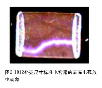 這些電容器的電容值通常是相同的,所以在這種情況下每個電容器的有效電壓(VC)都等于施加在該器件上的總電壓(VT)除以電容器的數目(n)即VC=VT/n。利用這種方法可以降低每個電容器組的有效電壓。高壓電路的設計者還利用這個原理,通過串聯(lián)單個電容器來降低每個電容器的電壓。不過,在兩種情況下總電容(CT)都將會下降:1/CT=(1/C1+1/C2…+1/Cn)利用一臺高速相機觀察到了另一個重要的問題,即在一個標準電容器設計上施加一個電壓之后出現的表面電弧放電現象,如圖2所示。“浮動電極”串聯(lián)設計可以有效地解決表面弧的問題。不過,與如前所述的標準設計相比,其主要弊端在于其較低的容量。