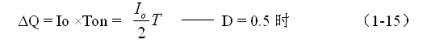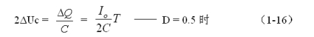 由圖1-6可以看出,在控制開關(guān)的占空比D等于0.5的情況下,電容器充、放電的電荷和充、放電的時間,以及正、負(fù)電壓紋波值均應(yīng)該相等,并且電容器充電流的平均值也正好等于流過負(fù)載的電流。因此,電容器充時,電容器存儲的電荷ΔQ為: