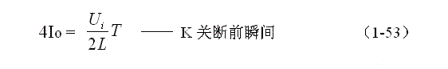 (1-44)式中iL為流過(guò)儲(chǔ)能電感L電流的瞬時(shí)值,t為時(shí)間變量;i(0)為的初始電流,即:控制開(kāi)關(guān)K接通瞬間之前,流過(guò)儲(chǔ)能電感L中的電流。當(dāng)開(kāi)關(guān)電源工作于臨界連續(xù)電流狀態(tài)時(shí),i(0) = 0 ,由此可以求得流過(guò)儲(chǔ)能電感L的最大電流為: