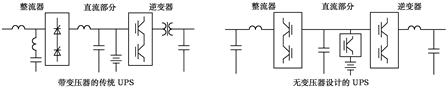 圖7傳統(tǒng)UPS與無(wú)變壓器UPS結(jié)構(gòu)對(duì)比圖