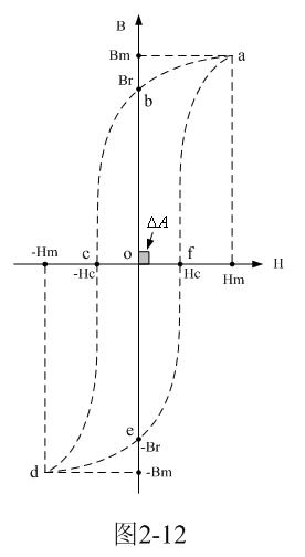 由(2-24)式很容易看出,虛線a-b-c-d-e-f-a圈起來的面積所對應的就是磁滯損耗的能量;即:磁滯損耗能量的大小與磁滯回線的面積成正比。