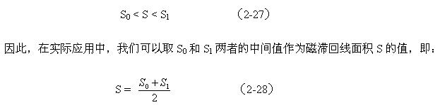 (2-30)式主要用于磁滯回線面積S的值小于第一次估算結果的情況;(2-31)式主要用于磁滯回線面積S的值大于第一次估算結果的情況。顯然用(2-30)和(2-31)估算出來的結果要比用(2-28)估算出來的結果更精確。