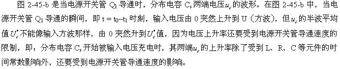 這里順便指出,圖2-45-b的波形是很難測(cè)量到的,因?yàn)樗旧隙荚谧儔浩鲀?nèi)部的分布電感Ls與分布電容Cs之間產(chǎn)生,但它會(huì)通過(guò)輻射對(duì)周邊電路造成干擾。
