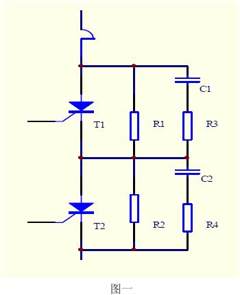 通常使用兩只晶閘管串聯工作以解決單只晶閘管耐壓不足的問題。這就需要解決晶閘管的工作電壓平均分配問題,包括靜態均壓與動態均壓。靜態均壓可采用無感電阻串聯分壓的方式解決;動態均壓比較復雜,這是因為:元件參數dv/dt的差異以及反向恢復時間的差異導致開通與關斷過程中元件承受的電壓分配不均,極端情況可使支路電壓全部加在一只晶閘管上。