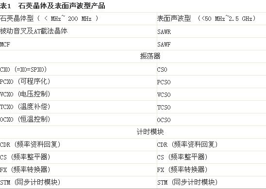 因?yàn)橛芯€及無(wú)線市場(chǎng)的快速成長(zhǎng),石英晶體及其高頻所需的表面聲波(SAW)裝置已受到廣泛運(yùn)用,范圍從電子玩具所使用的簡(jiǎn)單被動(dòng)石英晶體,到最精密電信網(wǎng)絡(luò)骨干頻率所使用的復(fù)雜同步計(jì)時(shí)模塊(STM)(表1)。如前篇文章所述,從2000~2001年的「.COM」市場(chǎng)瓦解之后,對(duì)于石英晶體及石英振蕩器的需求,以每年4~10%之間穩(wěn)定增加。而頻率控制產(chǎn)品的產(chǎn)業(yè)大環(huán)境,也經(jīng)歷巨大的變化。