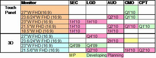 隨著Windows 7推出與對未來市場影響力,2010年多數(shù)面板廠商針對Notebook PC市場積極開發(fā)具觸控功能11.6寸寬螢幕面板,同時每一家生產(chǎn)迷你筆電面板廠商也都開發(fā)具有觸控功能面板。從下表一可以清楚了解每一廠商開發(fā)具觸控功能Notebook PC或迷你筆電面板時間表。