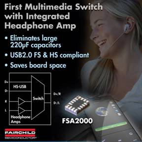 飛兆半導體公司(Fairchild Semiconductor)專注開發提升用戶滿意度以及使產品取得市場成功的模擬和功率功能,為手機設計人員提供一款集成有無電容耳機音頻放大器的自動選擇高速USB開關FSA2000,這是業界首款同類型集成式USB開關器件,而且能夠減少元件數量、電路板占用空間并降低材料清單(BOM)成本。