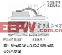 通常,逆變器設計主要考慮IGBTTjmax(最高結溫)的限制,但在混合動力車應用中,逆變器較少處于恒定工況,加速、巡航、減速都會帶來電流、電壓的改變,由此帶來的ΔTj(結溫快速變化)將會更大程度影響IGBT的壽命,IGBT導通電流波動時,綁定線也會隨之擺動,對綁定線和IGBT芯片連接可靠性有較大的影響,反復的擺動可能導致綁定線壽命的耗盡(EOL,EndofLife),例如綁定線和IGBT芯片焊接脫落、綁定線斷裂等,直接導致IGBT的損壞。