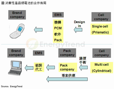 以產(chǎn)品發(fā)展競(jìng)爭(zhēng)來(lái)看,EnergyTrend表示,手機(jī)以及筆記本電腦一直是鋰電池的最大戰(zhàn)場(chǎng),但也因?yàn)楫a(chǎn)業(yè)平衡的關(guān)系而產(chǎn)生出不同的合作模式。以手機(jī)電池來(lái)說(shuō),中端與低端產(chǎn)品市場(chǎng),大多以價(jià)格為考量,也因此將使得產(chǎn)品定位陷入品質(zhì)與價(jià)格之間的掙扎,而高價(jià)位產(chǎn)品,則必須藉由在產(chǎn)品設(shè)計(jì)初期的共同發(fā)展,來(lái)設(shè)法讓零組件產(chǎn)品確保切入供應(yīng)鏈,包括正崴等手機(jī)電池廠即為一例。