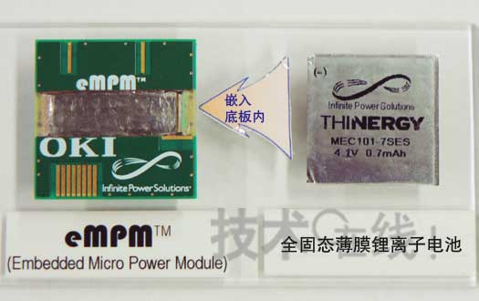 不僅是電容器及IC,就連電池也開始內(nèi)置在印刷底板中。沖Printed Circuits試制出了內(nèi)置薄型全固態(tài)鋰離子充電電池的4層印刷底板,并在2010年6月舉辦的安裝技術(shù)國(guó)際展會(huì)“JPCA Show 2010”上進(jìn)行了參考展示。“已開始與多家設(shè)備廠商討論使用方法,希望最早于2011年啟動(dòng)業(yè)務(wù)”(沖Printed Circuits技術(shù)本部商品開發(fā)部擔(dān)當(dāng)部長(zhǎng)中澤哲夫)。