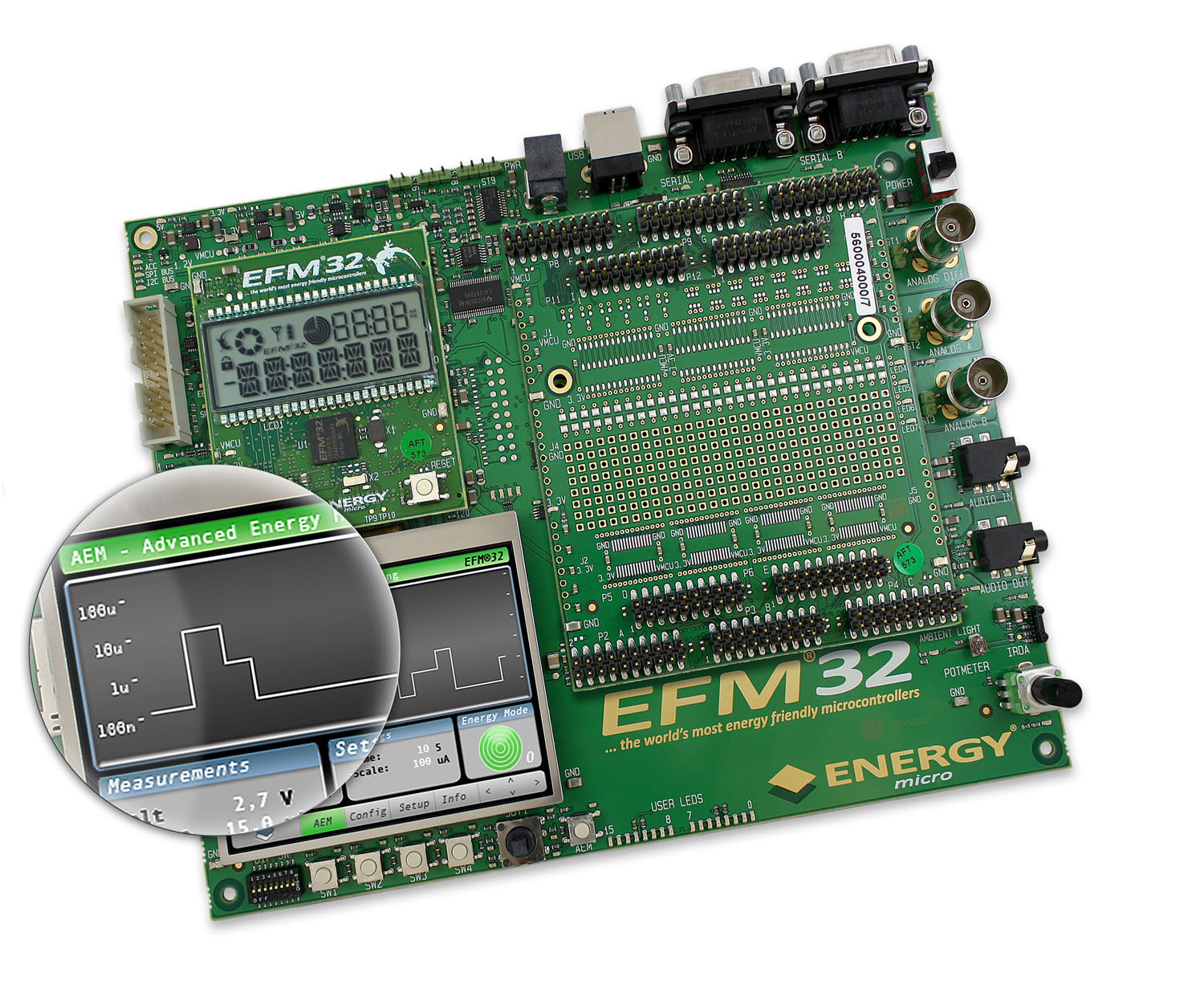 圖1:節能EFM32 Gecko微控制器的開發工具包有先進的能源監控系統。