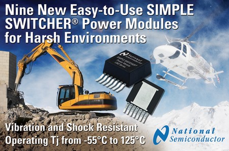 幾款全新的 SIMPLE SWITCHER 電源模塊具有攝氏–55度至+125 度的寬工作溫度范圍,適用于工業和軍事應用等惡劣環境下所使用的現場可編程門陣列(FPGA)、微處理器、數字信號處理器(DSPs)以及其他負載點(POL)電源轉換系統供電。