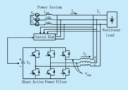 在配電系統(tǒng)中,傳統(tǒng)的諧波抑制和無功補(bǔ)償方法是將無源電力濾波器與需補(bǔ)償?shù)姆蔷€性負(fù)荷并聯(lián),為諧波提供一個低阻通路的同時,也提供負(fù)載所需的無功功率,這是最常見和實用的方法。該裝置利用電感和電容器貯能元件。根據(jù)諧振原理,通過濾波電路對需要消除的高次諧波進(jìn)行調(diào)諧,使之發(fā)生諧振。以便其在諧振時得到阻抗最小的特性,有效消除指定次數(shù)的諧波,并在諧波源附件就地吸收諧波電流,從而不使其注入電網(wǎng)中去。該裝置的優(yōu)點是投資少、效率高、結(jié)構(gòu)簡單。運行可靠及維護(hù)方便,運行費用也低,不但起到濾波作用,還能進(jìn)行無功補(bǔ)償。因此,無源濾波器是目前廣泛采用的抑制諧波及無功補(bǔ)償?shù)闹匾侄巍5摲椒ǖ难a(bǔ)償特性受電網(wǎng)阻抗、頻率和運行工況的影響,只能起到對某幾次固定頻率諧波的抑制效果,而很可能對其它次諧波有放大作用,使濾波器過載甚至燒毀。另外,LC濾波電路會因系統(tǒng)阻抗參數(shù)變化而產(chǎn)生與系統(tǒng)并聯(lián)諧振問題,影響和后果嚴(yán)重。