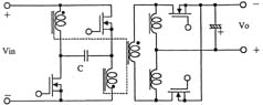 另外,如圖3所示,在采用絕緣變壓器的場合,研究人員還提出了將有源鉗位電路嵌入推挽式轉換器中的方案,可在采用48V輸入和1.2V/70A輸出的條件下實現高達91%的效率。上面講到的幾種電路方式基本上都是一段式結構,最近,出于進一步提高效率的考慮,人們正在加緊研發兩段式結構的轉換器。就普通的轉換器而言,采用兩段式結構將導致效率下降是人所共知的常識,然而,在低電壓大電流轉換器中,對輸出進行同步整流是很普遍的做法,因此,如何實現同步整流操作的高效化便成為了關鍵所在。