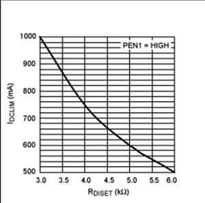 充電速度由下面幾個因素決定:電池電壓、USB/DC輸入電流限制、充電電流設置電阻(RCISET)、ISYS以及管心溫度。MAX8671X為了防止輸入過載和過熱,可自動將充電電流降至某個低于所設置的充電速率的數(shù)值。
