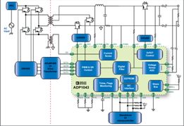 如何提高電源的效率,是目前電源設計中面臨的重要課題。數字電源技術的出現為提高電源的效率提供了新的方法。ADP1043是ADI公司推出的一款針對高端服務器、存儲器以及通信設備等電源所設計的數字電源控制器,可支持多種拓撲結構,并利用直觀的圖形用戶界面(GUI)無需用語言進行編程,便可在幾分鐘之內配置包括頻率、時序、電壓設置與保護限制等系統電源參數。圖1所示為ADP1043的典型應用電路。其所采用的數字電源技術可幫助實現高效率電源。
