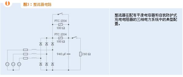 相比之下,如果將固定電阻器用作充電電流限制器,上述故障將導(dǎo)致電阻器產(chǎn)生相當(dāng)高的功率耗損,這會要求元件要有一定大的尺寸,這很不經(jīng)濟(jì)。以下特殊實(shí)例(見圖3)可清楚說明這一功能原理。