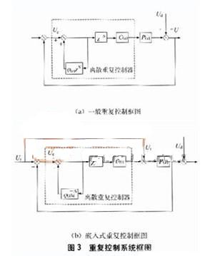逆變器采用重復控制(repetitive control)是為了克服整流型非線性負載引起的輸出波形周期性的畸變,它通常與其他PWM控制方式相結(jié)合。重復控制的思想是假定前一周期出現(xiàn)的基波波形將在下一基波周期的同一時間重復出現(xiàn),控制器根據(jù)給定信號和反饋信號的誤差來確定所需的校正信號,然后在下一個基波周期的同一時間將此信號疊加到原控制信號上,以消除后面各周期中將出現(xiàn)的重復畸變。