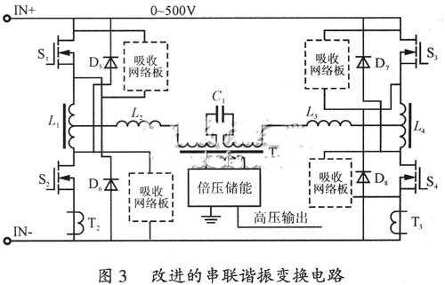 改進(jìn)的串聯(lián)諧振變換電路具有電流、電壓限制的雙斜率輸出特性,電感L2、L3是諧振電感。C1為諧振電容。