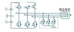 m.d.manjrekar和a.rao等學(xué)者提出了一種通過添加輔助零狀態(tài)開關(guān),以消除因零開關(guān)狀態(tài)而產(chǎn)生共模電壓的方案,電路結(jié)構(gòu)見圖4所示。這種輔助零狀態(tài)合成器方法在經(jīng)濟方面很有吸引力,并且還可以使消除感應(yīng)電機側(cè)共模電壓。