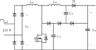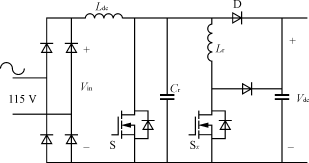對于1.5kW功率等級,輸入電流有效值為15A,平均開關電流是13A,峰值電流為22A,需要電流定額至少為30A的開關器件。盡管這個方案提供了比較簡單的單級功率變換,但也存在一些缺陷,如半導體器件承受的電壓應力較高、輸出電壓調節性能差,輸出電流紋波大。