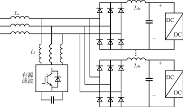 有源濾波器定額約為充電站額定功率定額的20%。在整流端一般采用直流側電感來提高整流器的功率因數,可以選用串聯或并聯方式的有源濾波方案。