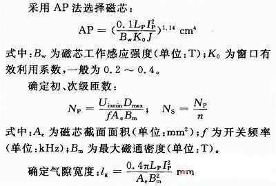 確定已知參數:直流輸入電壓的最大值Uinmax和最小值Uinmax;輸出電壓Uo、功率Po;開關頻率f、工作效率η、開關導通壓降UDS。在反激變壓器中,次級反激電壓VOR與輸入電壓之和不能高于開關管的耐壓USmax,