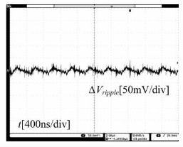 圖13給出了滿載情況下輸出紋波電壓的波形,顯然,輸出紋波電壓的波動小,且無脈動,輸出紋波電壓得到了很有效的抑制。