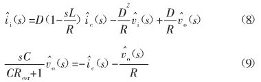 根據圖7所示的非隔離負電壓Buck開關電源CCM小信號模型,同時將等式(7)帶入化簡得,CCM-CPM型非隔離負電壓Buck開關電源的動態方程為: