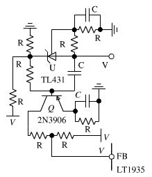 反饋控制回路采用了峰值電流控制。相比傳統的電壓控制,峰值電流控制一方面能很好的改善電源的動態響應,另一方面還能實現快速的過電流保護,很大程度上提高了系統的可靠性。由于采用了電源控制器LT1935,其內部集成了峰值電路控制電路和斜坡補償電路,非隔離負電壓DC/DC開關電源反饋回路設計即轉換為補償網絡設計,進而大大簡化了反饋回路的設計。