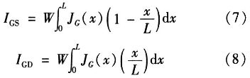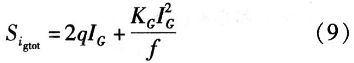 其中,JG是柵極電流密度,L是溝道長度,W是溝道寬度,x是沿溝道的位置(源極處x=0,漏極處x=L),IGS和IGD是柵極電流的柵/源和柵/漏分量。通過線性化柵電流密度與位置的關(guān)系,簡化這些等價(jià)噪聲電流分析表達(dá)式,所得的總柵極電流噪聲表達(dá)式為