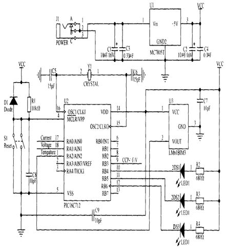 因此,設(shè)計(jì)良好的充電器應(yīng)具有溫度檢測功能并能夠根據(jù)不同的環(huán)境溫度調(diào)整充電過程中的各轉(zhuǎn)換電壓值;同時,充電器還應(yīng)具備溫度保護(hù)功能,在充電過程中,當(dāng)蓄電池溫度超出限定的溫度范圍時充電器應(yīng)立即停止充電或進(jìn)入涓流充電,并且PIC16C712應(yīng)點(diǎn)亮故障指示燈以提示用戶出現(xiàn)何種異常。