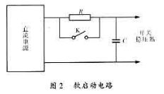 開關(guān)穩(wěn)壓電源的電路比較復(fù)雜,基本上可以分為小功率的控制部分和大功率的開關(guān)部分。開關(guān)晶體管則屬大功率,為保護開關(guān)晶體管在開啟或關(guān)斷電源時的安全,必須先讓調(diào)制器、放大器等小功率的控制電路工作。為此,要保證正確的開機程序。開關(guān)穩(wěn)壓器的輸入端一般接有小電感、大電容的輸入濾波器。在開機瞬間,濾波電容器會流過很大的浪涌電流,這個浪涌電流可以為正常輸入電流的數(shù)倍。這樣大的浪涌電流會使普通電源開關(guān)的觸點或繼電器的觸點熔化,并使輸入保險絲熔斷。另外,浪涌電流也會損害電容器,使之壽命縮短,過早損壞。為此,開機時應(yīng)該接入一個限流電阻,通過這個限流電阻來對電容器充電。為了不使該限流電阻消耗過多的功率,以致影響開關(guān)穩(wěn)壓器的正常工作,而在開機暫態(tài)過程結(jié)束后,用一個繼電器自動短接它,使直流電源直接對開關(guān)穩(wěn)壓器供電,如圖2所示。這種電路稱之謂開關(guān)穩(wěn)壓器的“軟啟動”電路。